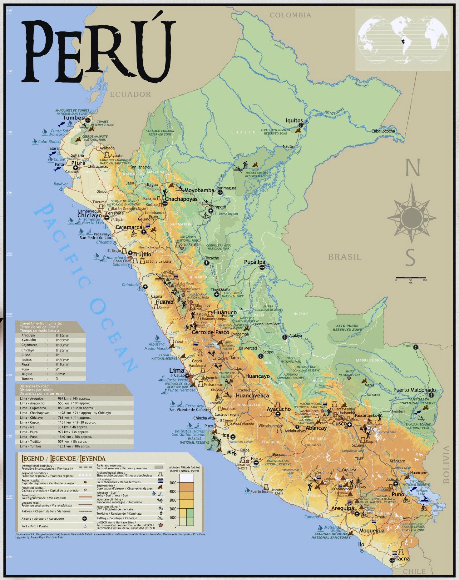 מפה של פרו נסיעות. פרו נסיעות המפה (דרום אמריקה - אמריקה) כדי להדפיס. פרו נסיעות המפה (דרום אמריקה - אמריקה) להורדה.
